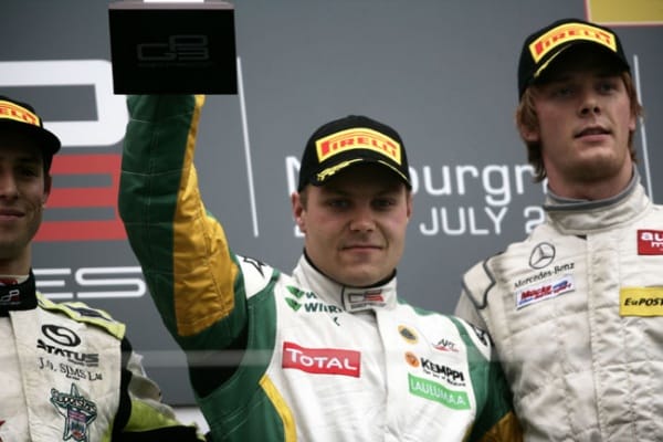 Valtteri Bottas took his maiden GP3 Series win at Nürburgring today after a strong start from sixth put him into the lead by the end of Lap 1. The Lotus ART man finished 1.473 seconds ahead of Status Grand Prix’s Alexander Sims and RSC Mücke Motorsport’s Nigel Melker who claimed a home race podium for his German team.