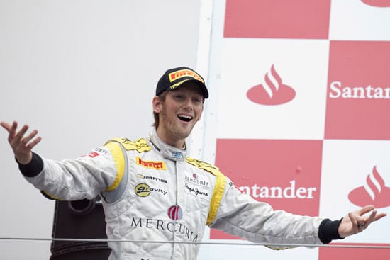 Romain Grosjean improved on yesterday’s podium with a thrilling battle for victory in changing weather conditions in this morning’s sprint race at the Nurburgring, keeping calm and taking advantage of other people’s misfortunes to win from Jules Bianchi and Luca Filippi.