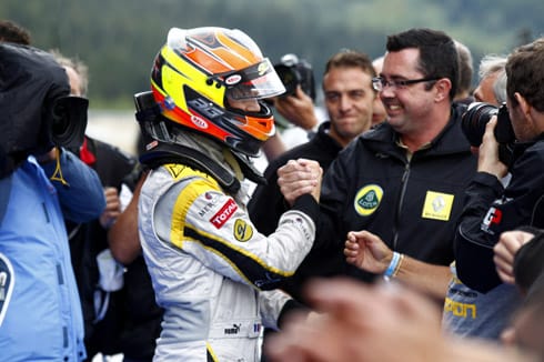 It’s a beautiful day in Spa for Christian Vietoris and Romain Grosjean: the German racer drove flawlessly in tricky conditions to take his first win of the season while the Frenchman clinched the seventh GP2 SeriesTM title after he finished third in today’s feature race. Jules Bianchi finished second.