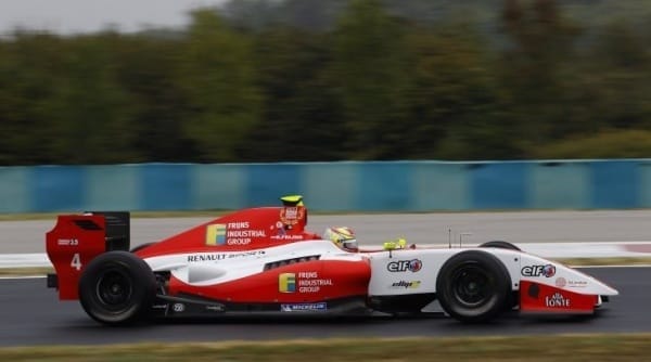 Robin Frijns (Fortec Motorsports) increased his championship lead with victory at the Hungaroring, and in doing so became the first driver to record three victories in this season’s Formula Renault 3.5 Series. Frijns led race one from start to finish to win from Kevin Magnussen (Carlin) and Jules Bianchi (Tech 1 Racing). The 2011 Eurocup Formula Renault 2.0 champion now holds a 16-point lead over Jules Bianchi, who moves up to second, and is 29 points clear of Sam Bird (ISR).