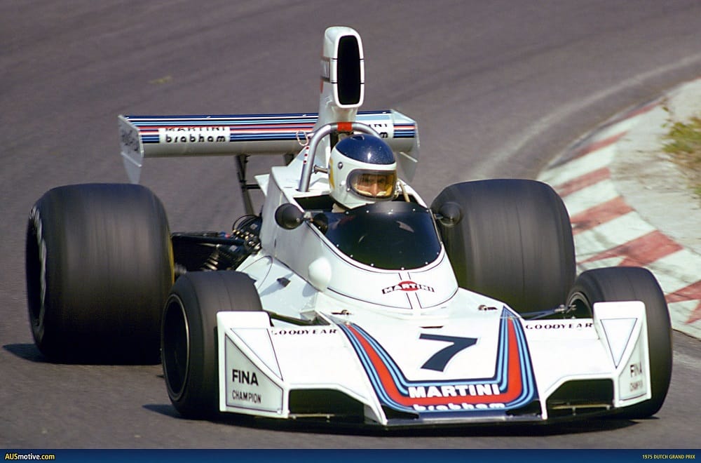 Carlos Reutemann Brabham BT44 1975 | Martini racing.Twice third during the 1973 Formula 1 season, he also finished second for Ferrari’s sports car team at Vallelunga and Monza. That year also included his only Le Mans 24 Hours start when Reutemann and Tim Schenken retired a Ferrari 312PB.