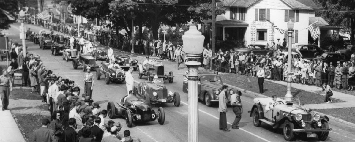 Road racing came to Watkins Glen in 1948 by way of Cameron Argetsinger, a law student at Cornell University who often stayed at his father’s summer home on Seneca Lake, with the family having ties to the area since the early 1800s. Argetsinger, an early member of the SCCA, proposed an amateur road race to be called the “Watkins Glen Grand Prix” to the Watkins Glen Chamber of Commerce. Amid an enthusiastic response to the idea, Argetsinger mapped out a 6.6-mile course using mostly paved roads with a short dirt and gravel stretch, and the SCCA sanction was obtained.