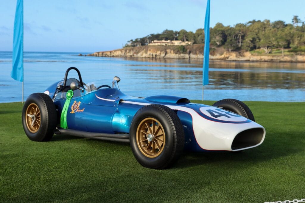 Posed on the show field along Stillwater Cove, the 1960 Scarab Formula 1 shows off its Tour d’Elegance ribbon.