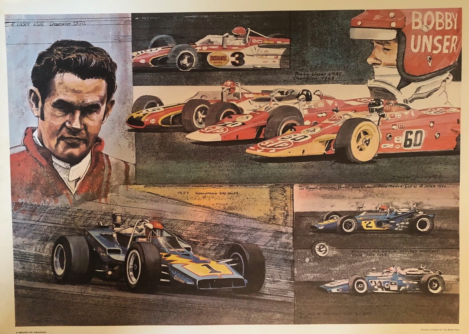Merchant Art Racing Poster, Lithograph printed on heavy stock paper printed in U.K. All are 24. inches X 17.5 inches